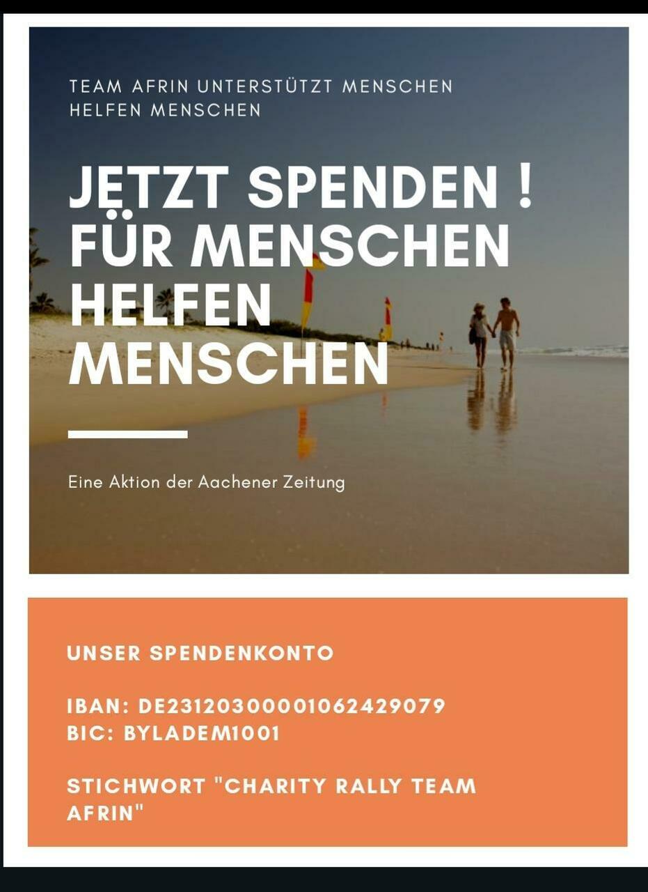 Wir unterstützen "Menschen helfen Menschen" - Spenden Sie für die Aktion "Menschen helfen Menschen" der Aachener Zeitung im Rahmen der Baltic Sea Circle Ralley des "Team Afrin" - mehr infos unterLue lisää