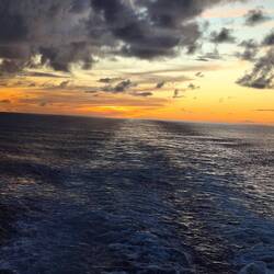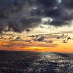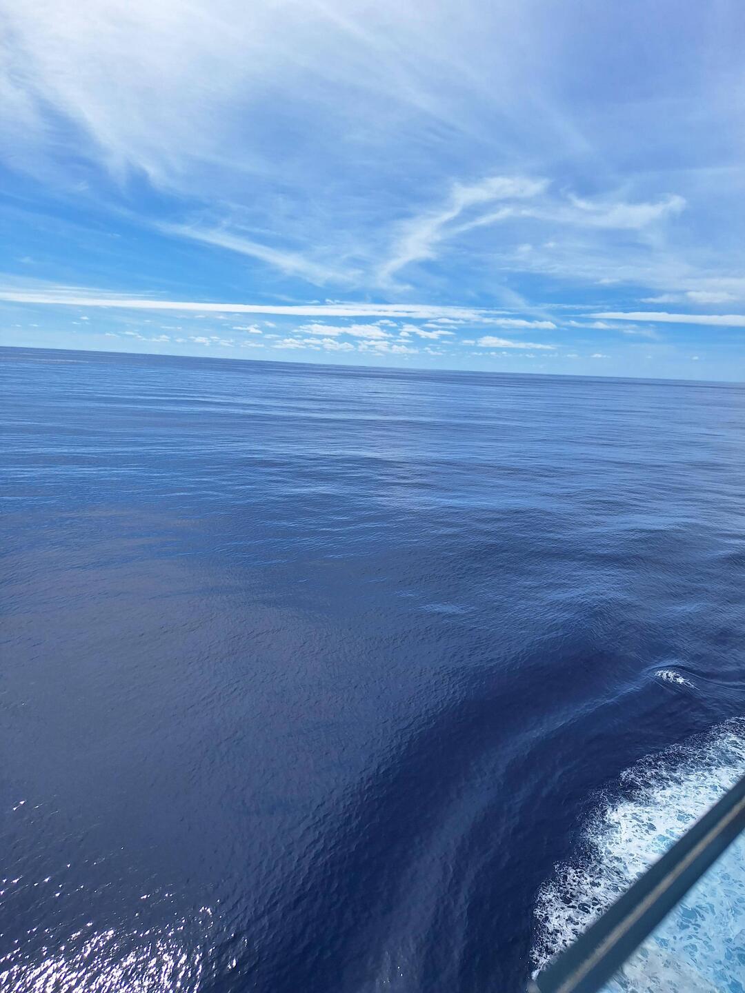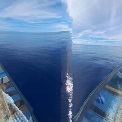 Wunderschönes Wetter 26°, die Sonne lacht, heute wieder fliegende Fische beobachtet. Tanzkurs Slow Fox besucht und abends den Vortrag des Kapitäns.