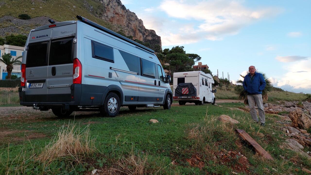 Wir haben uns einen privaten Stellplatz direkt am Meer gesucht, 6 km von Palermo entfernt in einem Naturschutzgebiet. Wir gesellten uns zu einem weitern Gleichgesinnten aus Deutschland.