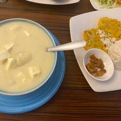 Un des plats local est cette soupe de fromage avec des pommes de terre. La raclette revue à la colombienne - pas fou fou je dois dire 😶