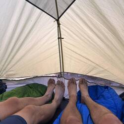 The morning was cold and we had a heavy dew overnight. All our stuff was wet but not a big problem. Hike started up and we climbed 500 feet. After that all downhill about 3000 feet. We passed by viewsRead more
