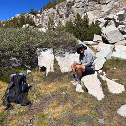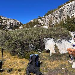 Cold morning when we left Whitney. 2000 feet traveled up and through rock fields. Really glad I have poles. Thanks Carolyn! Lunch at a creek and a guy caught a trout. Very cool. The high plains meadowRead more