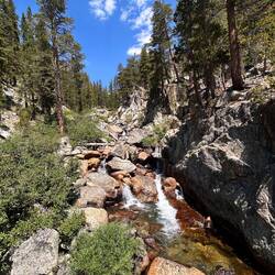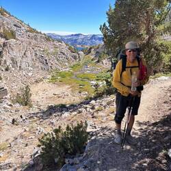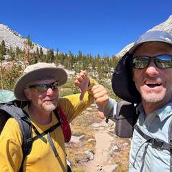Day started at evolution basin lake. And is one of the most beautiful places I have seen. The day was almost entirely downhill with a slight grade. Couple steep trail drops but overall not bad.Read more