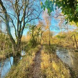 Blue skies with a chill in the air. Hat, gloves and 3 layers were called for, so thankful for the clear blue sky.