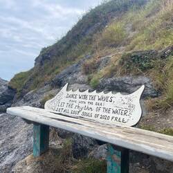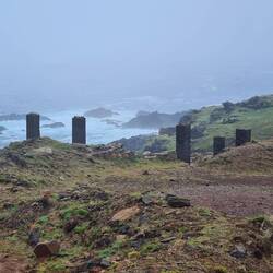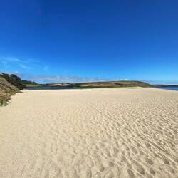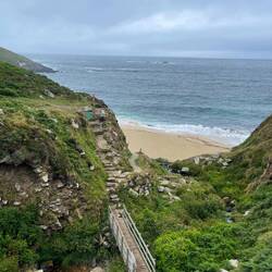 Started at Portreath where we left off in 2024. Hilly start then a surprisingly lovely hour of flat walking to Hellsmouth cafe for fish finger sandwiches. After tackling the towans we came across aBaca lagi
