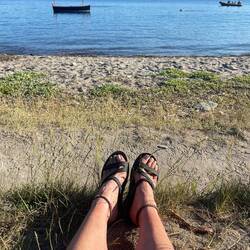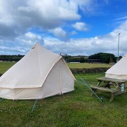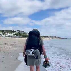 After a good nights sleep in the bell tent we headed into Penzance. Fueled up on a Wetherspoons breakfast, new trail runners for Debbie then an easy walk to Marazion & St Michaels Mount. Dipped ourBaca lagi
