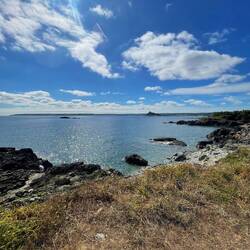 What a day - over 16 miles of unforgiving terrain. It started with seals who looked like they were warming their faces in the morning sunshine. Fabulous beaches & and cream tea at Porth Curno. ABaca lagi