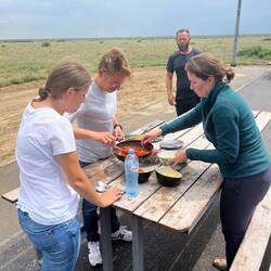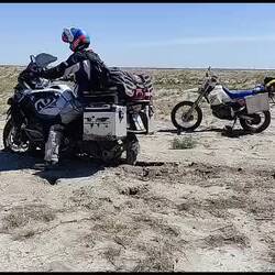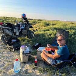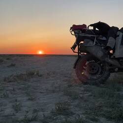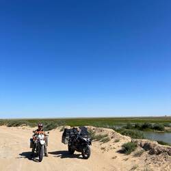 Markus and I set of fully prepared into the step/desert 🏜️. With 6 L plus of water per person we decided to take a road which would halve our kilometres but triple the time needed.