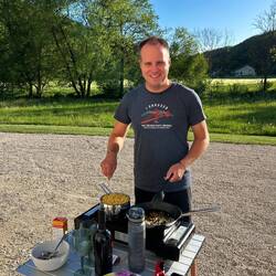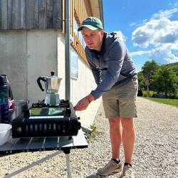 Wir fuhren bis ins Altmühltal, wo wir auf einem Bauernhof die erste Nacht im Dachzelt verbrachten und unser Equipment testeten und endlich wieder selbst kochten.