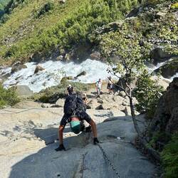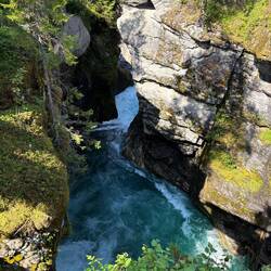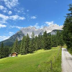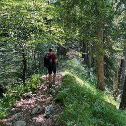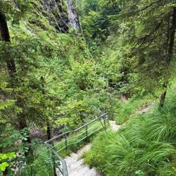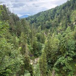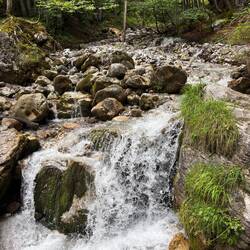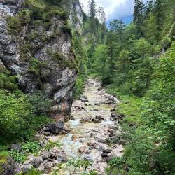 Heute sind wir die Almbachklamm-Runde über Ettenberg gelaufen. Über zahlreiche Stege, Brücken und Stufen wanderten wir über die Theresienklause zum Mesnerwirt, wo wir mittags mit Semmelknödel undBaca lagi
