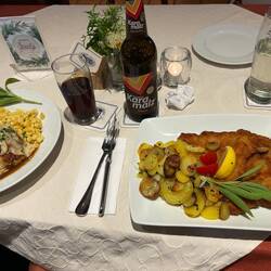 Da das Wetter gestern nicht zum Wandern einlud, verbrachten wir den Tag in der Watzmann-Therme in der Sauna🧖♀️🧖♂️ Abends gab es lecker Cordon bleu beim Wirthaus Wachterl.