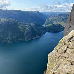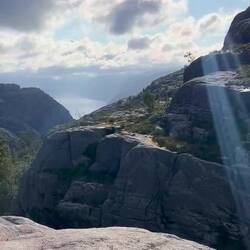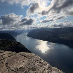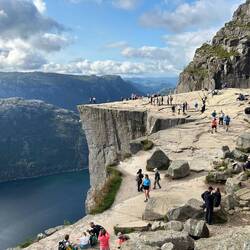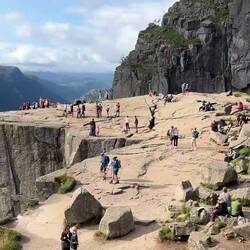 Heute war Aufstehen um 05:30 Uhr angesagt. Nach kurzem Frischmachen ging es für uns auch schon zum Parkplatz für die Preikestolen-Wanderung, der Touristenmagnet Nummer 1 in Norwegen. Oben angekommenBaca lagi