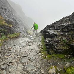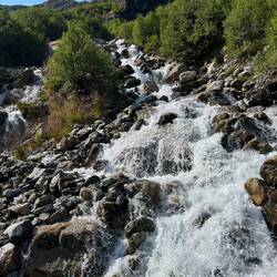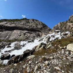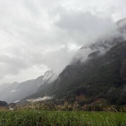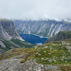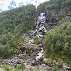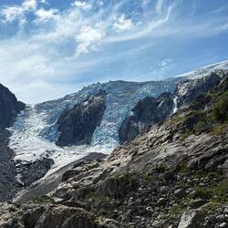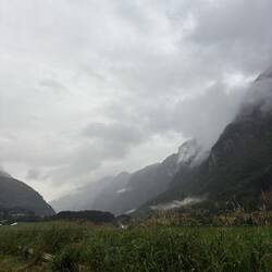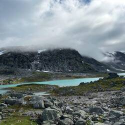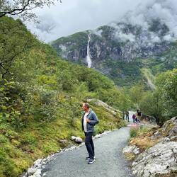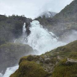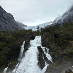 Die Nacht regnete es sehr viel und selbst am Morgen nieselte es ein wenig. Wir packten die Sachen zusammen und machten uns auf den Weg zum Briksdalsbreen-Gletscher. Dieser gehört zumBaca lagi