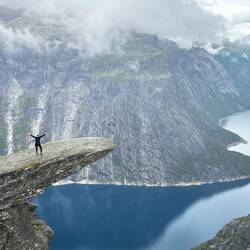 Trolltunga oder zu Deutsch Trollzunge🧌 Ein sehr bekanntes Fotomotiv, welches aber eine lange und dadurch anstrengende Wanderung voraussetzt - gerade wenn man wie wir um 04:20 Uhr aufsteht⏰ WirBaca lagi