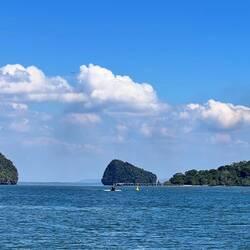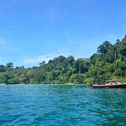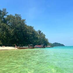 Mit einem Longtailboat haben wir heute vier Inseln besucht. Beim Schnorcheln hatten wir klare Sicht auf ganz viele Fische in allen Farben, Korallen, Seeigel …