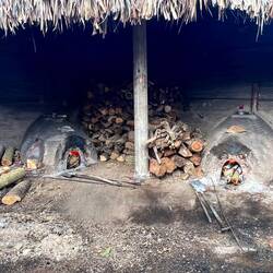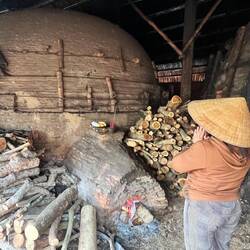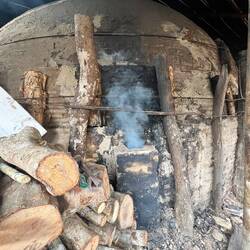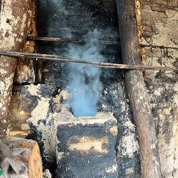 Weiter ging es nach einer Mittagspause in ein Holzkohledorf. Die Meiler waren fast alle in Betrieb und es war heiß wie in der Hölle.