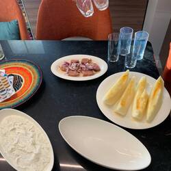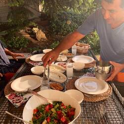 Die beiden haben uns so verwöhnt, dass ich ganz verlegen war. Das Abendessen mit türkischen Vorspeisen undOkumaya devam et
