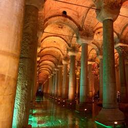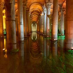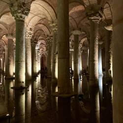 Die Basilika Zisterne ist die Größte und Bekannteste der unterirdischen Zisternen Istanbuls aus der Zeit des blühenden Konstantinopel. Versunkener Palast wird die fast 1500 Jahre alte Anlage auchOkumaya devam et