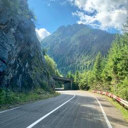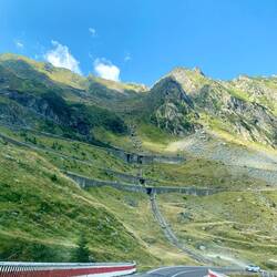 Wir haben den Fărăgășan-Pass überquert. Gehört zu den schönsten Straßen der Welt. Bären haben wir keine mehr gesehen, dafür atemberaubende Landschaft. Überall Wasserfälle. Wie inOkumaya devam et