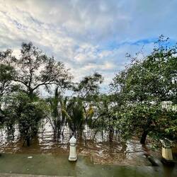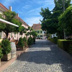 Stehen an einem Yachthafen direkt an der Donau. Bei gutem Wetter ist es hier bestimmt toll.