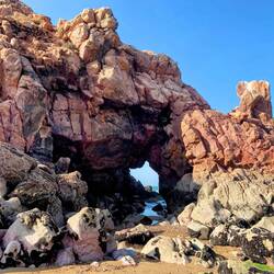 Über Tiznit (frisches Gemüse eingekauft) sind wir durch ein kleines Gebirge Richtung Tafraoute unterwegs. Die Landschaft war wieder bizarr. Diesmal aber eher terrakottafarben.
