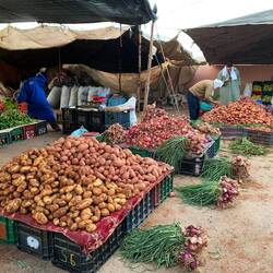 Samstags ist Kamel-, Rinder- und Ziegenmarkt in Guelmim. Daneben der normale Wochenmarkt.
