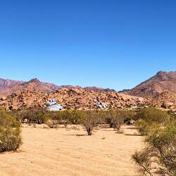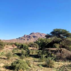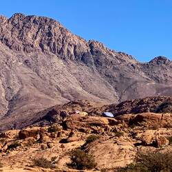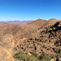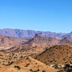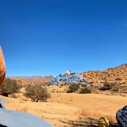 Sind jetzt in Tafraoute und gucken in die Berge.
