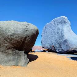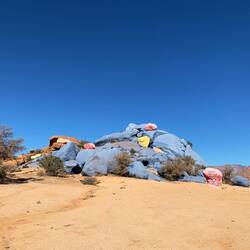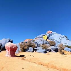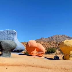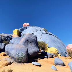 Der belgische Künstler Jean Vérame hat in der Nähe von Tafraoute Felsen bunt bemalt. Der Weg dorthin ist nicht ganz leicht. 6 km unbefestigte Schotterstraße, aber die Wirkung ist schon irre.もっと詳しく