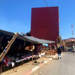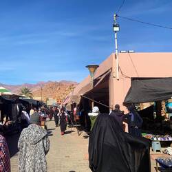 Jeden Mittwoch ist großer Markttag in Tafraoute. Wir sind gegen Mittag durch Palmenhaine in den Ort gelaufen.