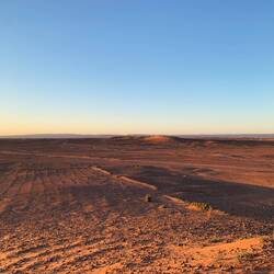 Nun sind wir in der Sahara angekommen. Zunächst fuhren wir durch eine Steinwüste, dann kam der Sand. Wir stehen am Ortsende von M‘hamid und gucken auf die Wüste. Um uns herum, wie sollte es auchもっと詳しく