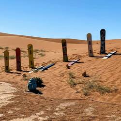 Es gibt in Marokko zwei Dünenlandschaften. Erg Chegaga und die grössere Erg Chebbi. Hier haben wir einen Wüstencampingplatz mit Blick auf die Dünen gefunden. Erst mal ein bisschen durch dieもっと詳しく