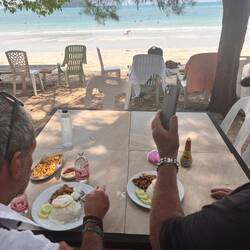 Unser Ziel war die große Krabbe, das Wahrzeichen von Keb. Dazu ging es am Meer entlang. Überall gibt es Picknickplätze, die man mieten kann. Wird von den Kambodschanern rege genutzt. VorzugsweiseBaca selengkapnya