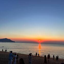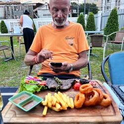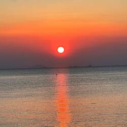 Toller Sonnenuntergang, tolles Essen. Morgen früh geht’s weiter.