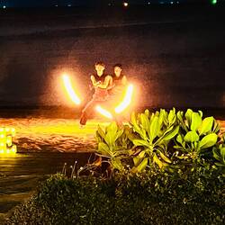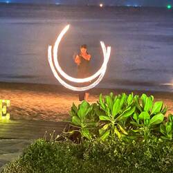 Wir haben den Nachmittag und Abend mit Elke im Sea of Love verbracht. Gechillt, gegessen und nach dem Sonnenuntergang gab es noch eine Feuershow am Strand.