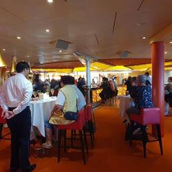 Zurück auf dem Schiff, haben wir erstmal gechillt. Und wer hätte es gedacht, im Theatrium wurde Dinner for one gezeigt. 👍