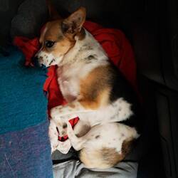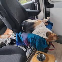 Heute standen wir an einem kleinen See. Nach viel rumschnüffeln und ein paar Vögel jagen darf man auch einfach mal zu faul sein um zum Essen aufzustehen
