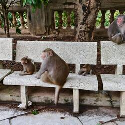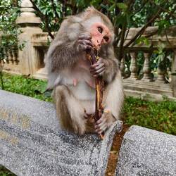 Rund um die " Göttin der Barmherzigkeit" finden sich wunderschöne Ausblicke auf Da Nang . Am Ausgang zog eine Affenscharr die Aufmerksamkeit auf sich .