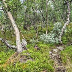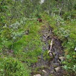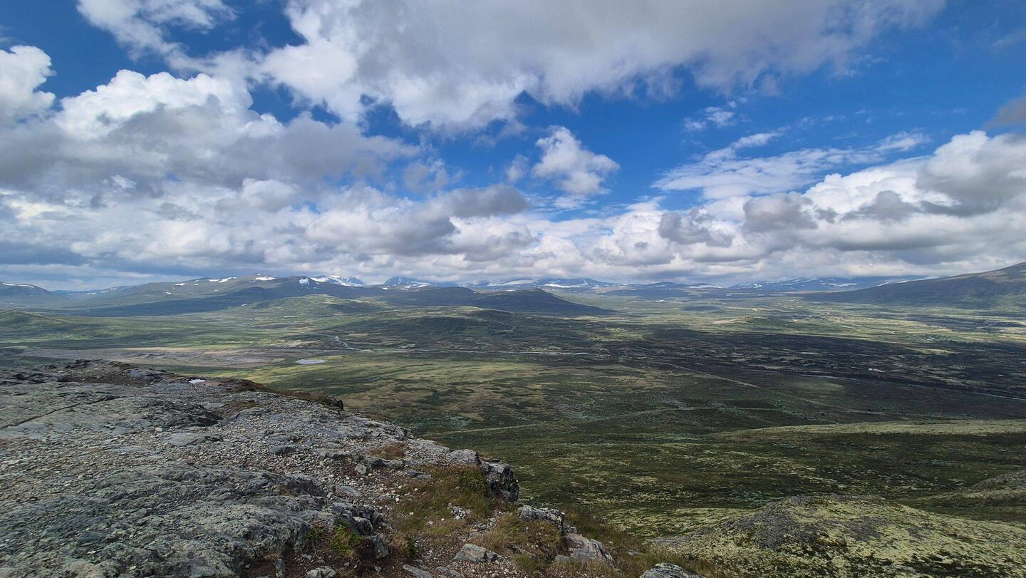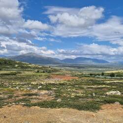 Was eine schöne Tour...Bin nun schon rund 20km durch das schöne Dovrefjell gewandert. Moorlandschaft; Moosflächen, Berge mit Schnee .... wundervoll.
