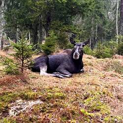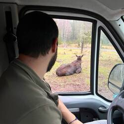 5 minutes après notre départ, nous voyons 2 élans traversés la route à 100 mètres de nous.