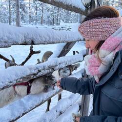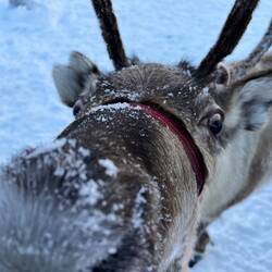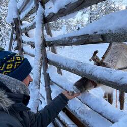 Après un joli réveil sous la neige dans notre bulle, nous allons faire une balade et voir les rennes.