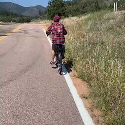 The bike ride was fun and beautiful, but it was difficult as well. Not only was I riding a road bike on a mountain trail and trying not to slide it out from under me, but also my gear shift was broke as the cable was shredded. Also, we're oxygen deficient due to the high altitude at 8500 feet.