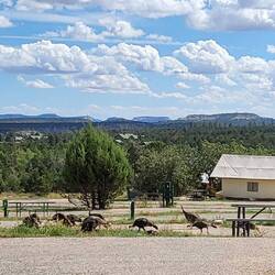 We arrived back at the campground early. What to do the rest of the day besides wash our sheets? Nothing, pretty much nothing. It's the weekend and the campground is filling up. There's a Glamping Event this weekend, but we are not feeling social. The hot tub is full, so no hot tub today. We sat at our campsite and hung out the rest of the day. Doug was so sweet and picked me flowers. I put it in a toilet paper vase. Twenty wild turkeys passed our campsite as we sat outside together. We retired early. Maybe tomorrow we will feel better.もっと詳しく
