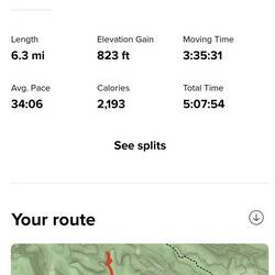 It was a 6.3 mile hike that took us 5 hours. It had an 823 foot elevation gain, and we burned almost 2200 calories.Read more