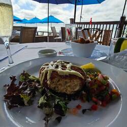 Who would know this place was such a fanciful delight! Crab cakes, anchovy stuffed olives, Rebecca's Paloma, and champagnuh