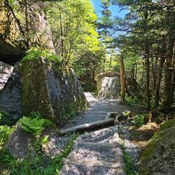 Rainbow Falls Trail is within the National Park and is an in and out hike to the waterfall, 5.4 miles.
