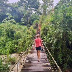 Der Weg zur Rezeption des Hostels führt über eine Hängebrücke, was ein vielversprechender Start in die geplante Naturzeit. Die letzten Tage ging alles bisschen Schlag auf Schlag und wir freuen uns auf mehr Ruhe. Es wird gechillt, geupdated, gequatscht und gelacht. Wir laufen für Essen und Eis den abenteuerlichen Weg über den Standstreifen in das nahe Dörfchen, während LKWs und Busse an uns vorbeischießen.