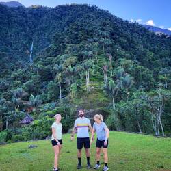 Als Beschreibung für die Strecke gibt es von unseren Guides entweder „kolumbianisch flach“ (= hoch und runter) oder „berg an“ (=dauerhaft, gefühlte 90% Steigung) als „Happy Hour“. Es ist sehr warm und wir alle sind direkt klitschnass geschwitzt. Das wird ein Dauerzustand sein.
