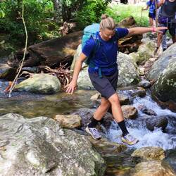 Unsere Pausen während der schweißtreibenden Wanderung könnten nicht schöner sein. Wir planschen im Fluss, lassen uns von der Strömung treiben und springen von Felsen. Wir unterhalten neugierige Kinder, während wir frische Orangen, Wassermelonen, Ananas schnabulieren.