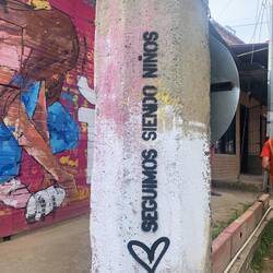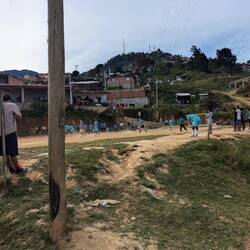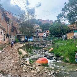 Nicht jede Comuna erhält solche Unterstützung der Stadt und muss sich vieles weiterhin selbst erschließen. Über einen Kontakt kann ich die Randbezirke der Comuna 6 entdecken, die noch mitten im Aufbau steckt. Stromkabel und Wasserleitungen sind wild gelegt, neben den typischen roten Ziegelbauten sind viele Holz- oder Plastikkonstruktionen zu sehen, es gibt keine betonierten Straßen. Hier lerne ich über den Prozess der Entstehung neuer Viertel. Ich bin beeindruckt von der Initiative von Erika und Pablo, die sich Themen wie Abtransport von Müll, Versorgung durch Aufzucht von Küken und anschließende Verteilung, Unterstützung bei Schulutensilien, Schulungen von freiwilligen Frauen für die Herstellung und Verteilung von Hygiene Artikeln, Unterstützung für Kinder und Senior*innen uvm. widmen. Große Empfehlung für einen Spaziergang mit Pablo nur empfehlen (+57 (304) 355-1936).