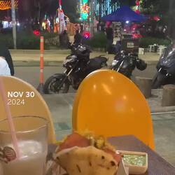 Mein erster Abend in Medellín, ich sitze auf einer Parkbank und beobachte das Treiben: Kinder malen vorgedruckte Bilder auf kleinen Leinwänden mit Wasserfarben aus, daneben der Rapper mit seinem tragbaren Lautsprecher, Hüpfburgen, Streetfoodstände rechts und links, die Weihnachtsdeko blinkt, im Restaurant gegenüber schreit der Kommentator des Fußballspiels, Autos (weniger dick als erwartet) mit dröhnendem Bass fahren vorbei. Meine Arepa und der frische Guanabana Saft sind so lecker.
